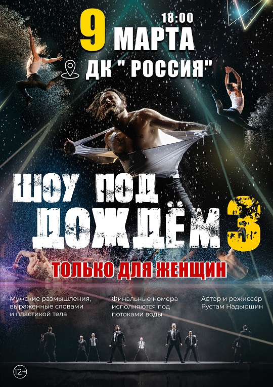 Только для женщин — яркая, веселая, романтичная провокация. Отношения мужчины и женщины, мужская ложь, женские мечты — это лишь малая часть вопросов, затронутых в спектакле. В шоу обозначены очень пикантные темы, которые могут поставить в неловкое положение любого мужчину. Грусть и сожаление, любовь и радость — эмоции рассказчика воплощаются на сцене в искусные танцы. Мысли и переживания ярко отображаются в пластике тел артистов. А главное, вся феерия чувств приправлена юмором! Финальная часть шоу исполняется под потоками воды. Этот спектакль не оставит равнодушной ни одну зрительницу!