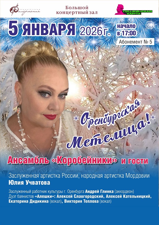 5 января на сцене Большого концертного зала филармонии для зрителей выступит ансамбль "Коробейники" с концертной программой "Оренбургская метелица".