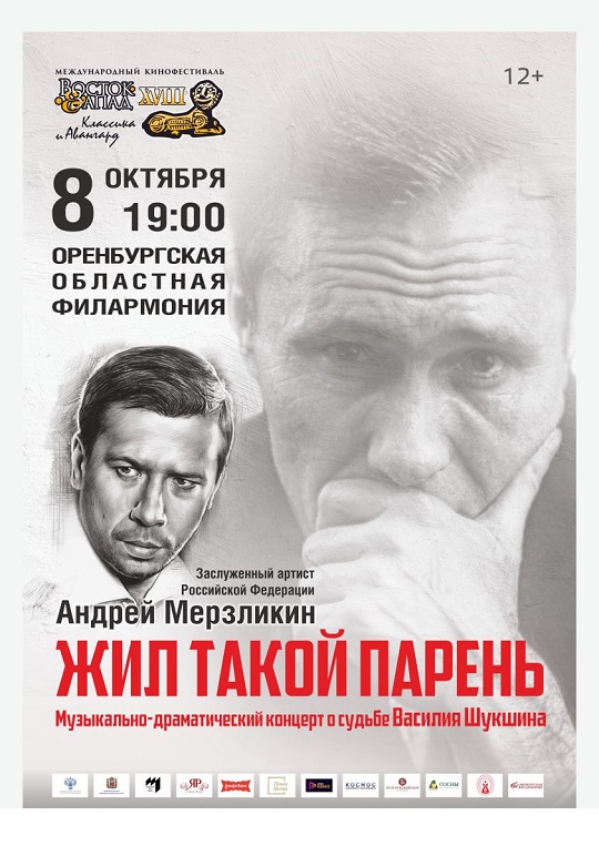 Андрей Ильич привезет в Оренбург музыкально-драматический концерт «Жил такой парень» (12+). Он расскажет о судьбе режиссёра, актёра и драматурга Василия Шукшина. Уникальные материалы из биографии писателя будут представлены в сопровождении рок-фолк группы «После одиннадцати».